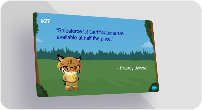 #27 “Salesforce U! Certifications are available at half the price.” - Pranay Jaiswal