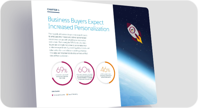 3 CHAPTER 1 Business Buyers Expect Increased Personalization The majority of business buyers now expect brands to anticipate their needs and deliver personalized experiences on par with what they’ve received as consumers. Fortunately for B2B brands, business buyers are willing to help brands personalize their customer experiences by providing relevant data and information for use in future marketing initiatives. This data can help brands develop a more unified view of their customers. 69% 60% 46% of business buyers expect of business buyers are comfortable of B2B marketers have a companies to anticipate with companies applying relevant completely unified view of their needs personal information in exchange customer data sources for personalized engagement Data Sources Connected Customer State of Marketing