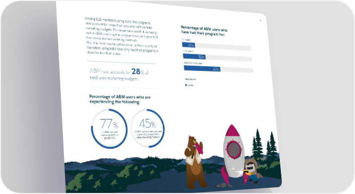 8 Among B2B marketers using ABM, the programs Percentage of ABM users who now account for more than a quarter of their total have had their program for: marketing budgets. This expense is worth it, as nearly half of ABM users say the programs deliver higher ROI 3+ years than comparable marketing methods. 17% Plus, the best may be yet to come, as the majority of marketers using ABM have only had their programs in 1–2 years place for less than a year. 32% less than one year ABM now accounts for 28% of 52% total user marketing budgets. Data Source ITSMA Percentage of ABM users who are experiencing the following: 77% 45% of ABM users are of ABM users are seeing at least achieving 10% or double ROI compared to greater ROI’ other marketing methods