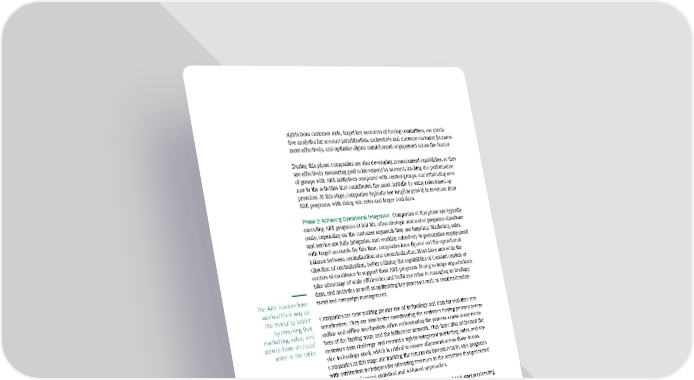sights from customer data, target key members of buying committees, use predic- tive analytics for account prioritization, orchestrate and measure customer journeys more effectively, and optimize digital omnichannel engagement across the funnel. During this phase, companies are also developing measurement capabilities, so they are effectively measuring goal achievement by account, tracking the performance of groups with ABE initiatives compared with control groups, and attributing reve- nue to the activities that contributed the most, initially by using rules-based ap- proaches. At this stage, companies typically see tangible growth in revenues from ABE programs, with rising win rates and larger deal sizes. Phase 3: Achieving Operational Integration. Companies at this phase are typically executing ABE programs at full tilt, often strategic and scaled programs simultane- ously, depending on the customer segments they are targeting. Marketing, sales, and service are fully integrated and working cohesively to personalize engagement with target accounts. By this time, companies have figured out the operational balance between centralization and decentralization. Most have moved in the direction of centralization, better utilizing the capabilities of demand centers or centers of excellence to support their ABE programs. Doing so helps organizations take advantage of scale efficiencies and build expertise in managing technology, data, and analytics as well as optimizing key processes such as content develop- The ABE leaders have ment and campaign management. worked their way up the maturity ladder Companies are now making greater use of technology and data for real-time per- by ensuring that sonalization. They are also better coordinating the customer buying journey across marketing, sales, and online and offline touchpoints, often orchestrating the process across many mem- service have an equal bers of the buying team and the influencer network. They have also addressed the voice at the table. customer data challenge and created a tightly integrated marketing, sales, and ser- vice technology stack, which is critical to ensure alignment across those teams. Companies at this stage are tracking the returns on investments in ABE programs with attribution techniques for allocating revenues to the activities that generated them, using advanced statistical and AI-based approaches. As companies achieve operational integration, the results of ABE start accelerating. Companies usually see increases in share of wallet, customer satisfaction, and cus- tomer lifetime value from the accounts they’ve targeted. We haven’t seen many companies make it this far, but some are making good progress and are close. Many executives admit that it’s difficult to achieve full cross-functional operational integration. The ABE leaders, we find, have worked their way up the maturity lad- der by ensuring that marketing, sales, and service have an equal voice at the table and respect for one another’s contributions. Without this, failure is inevitable. In fact, achieving the organizational and cultural shifts necessary to ensure success with ABE is often more important and difficult than building the technology and data infrastructure to support it. It demands understanding clearly how each func- tion contributes to business goals such as revenue growth, customer retention, and lifetime value optimization, and major changes in the ways B2B companies work cross-functionally, often requiring sophisticated program management, full-scale change management, and exceptional leadership. 14 Moving Beyond ABM to Account-Based Engagement