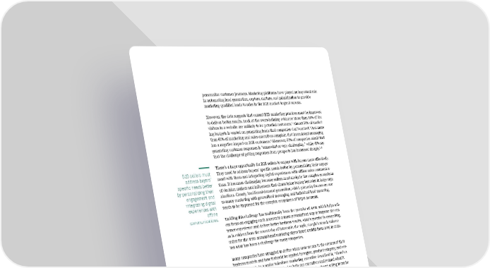 personalize customer journeys. Marketing platforms have played an important role in automating lead generation, capture, nurture, and prioritization to provide marketing-qualified leads to sales in the B2B market to great success. However, the data suggests that current B2B marketing practices must be improved to deliver better results. Look at the overwhelming evidence: More than 80% of the 2 Almost 50% of market- visitors to a website are unlikely to be potential customers. 3 ing budgets is wasted on generating leads that companies don’t contact. And more than 60% of marketing and sales executives complain that inconsistent messaging has a negative impact on B2B customers.4 Moreover, 60% of companies admit that generating customer responses is “somewhat or very challenging,” while 40% say 5, 6 that the challenge of getting responses from prospects has increased sharply. There’s a huge opportunity for B2B sellers to engage with buyers more effectively. B2B sellers must They need to address buyers’ specific needs better by personalizing their engage- address buyers’ ment with them and integrating digital experiences with offline sales communica- specific needs better tions. It becomes challenging because sellers must navigate the complex ecosystems by personalizing their of decision makers and influencers that characterize buying behavior in large orga- engagement and nizations. Clearly, traditional demand generation, which primarily focuses on one- integrating digital to-many marketing with generalized messaging and individual lead nurturing, experiences with needs to be improved for the complex ecosystems of larger accounts. offline communications. Tackling this challenge has traditionally been the promise of ABM, which helps sell- ers focus on engaging each account in a more personalized way to improve the cus- tomer experience and deliver better business results. ABM’s promise is compelling, as is evident from the recent rise of interest in the topic; Google’s Search Volume Index for the term account-based marketing skyrocketed tenfold from 2015 to 2020. Yet ABM has been a challenge for many companies. Many companies have struggled to define what ABM means in the context of their business models and how it should be applied by region, product category, and cus- tomer segment. As a senior Salesforce marketing executive described it, “There’s a lot of hype around this topic. We had to help our executives understand what it really is and define what it meant for Salesforce. Explaining it and selling it can be very tough otherwise.” Using the term account-based engagement (ABE), rather than account-based market- ing, shifts the focus to aligning marketing with sales and service and better commu- nicates what is critical for success. This helps clarify and position what’s required for senior marketing, sales, and service executives and their organizations to be suc- cessful with this strategy and adapt the approach for their business models. At its core, ABE focuses on aligning marketing, sales, and service on the strategy and tactics to win accounts, retain customers, and grow sales through targeted and personalized omnichannel engagement. That’s how we define ABE. B2B sellers can now also use rapidly improving technology and data to target a broader range of ac- count sizes and segments than was previously economically feasible. In addition, most companies will need to support traditional lead generation, which focuses on capturing, nurturing, and closing all inbound leads. 4 Moving Beyond ABM to Account-Based Engagement