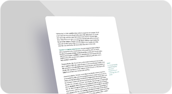 VMWare had to build capabilities from scratch to support the new program. It built a new stack that was more attuned to the needs of the ABE program and created new technology and data teams that worked closely with the corporate digital team. These teams now serve as an innovation hub that rolls out key learnings to the rest of the company. Thanks to its ABE efforts, VMWare’s cloud business has seen deal velocity improve from 12 to 18 months to 6 to 9 months, on average, while the close rate for the ABE deals is three times that of other deals. Transform to integrate across functions. For most companies, implementing an ABE program turns into a transformation of the marketing, sales, and service functions. It demands bridging organizational silos, adopting new ways of working together, building new capabilities, and managing large-scale change initiatives. Implementing ABE can prove to be extremely challenging, particularly across a large, matrixed organization. Thomson Reuters, the Toronto-headquartered global business services company, had to approach ABE with a sense of urgency in the case of its legal division. A very high proportion of its subscription-based business required negotiating periodic re- newals with large buyers. So the company decided to launch an ABE program, the For most companies, initial focus of which was retention and upselling. implementing ABE turns into a Almost immediately, Thomson Reuters figured out that the customer experience transformation of across marketing, sales, and client management played a major part in renewal de- marketing, sales, and cisions, and that addressing cross-functional fragmentation was critical. Jillian Gart- service. ner, Thomson Reuter’s director of account-based marketing for the legal division, described the company’s approach: “Including the client management organization was an absolutely critical element of our program for both one-to-one and one-to- few. The client management group had important account intelligence and relation- ships that were critical to our success. For us, connecting across organizational di- vides started at the top. Our marketing leadership team worked closely with the sales and client management leadership to gain buy-in for the program at the high- est levels.” The program became successful over time, getting positive customer feedback and having a large impact on the business’s bottom line. Thomson Reuters expanded its initial efforts to cover additional products and loca- tions, using its early successes to build the business case to expand the program. It found that it could scale more effectively by utilizing centralized capabilities to man- age data and technology and grouping similar accounts into segments to personalize on a one-to-few basis. Consequently, Thomson Reuters has been able to dramatically increase renewals and consistently grow revenues at above-market rates. BE holds enormous promise for B2B companies. Those that don’t invest in Abuilding ABE programs risk falling behind rivals, providing subpar experiences for their best customers, and missing opportunities they may not even be aware of. There’s no excuse for not getting going with a pilot right away, although scaling an ABE program to include a larger number of accounts spanning geographic areas, customer segments, and product categories will require careful planning, commit- ted execution, and large-scale change management. Boston Consulting Group 17