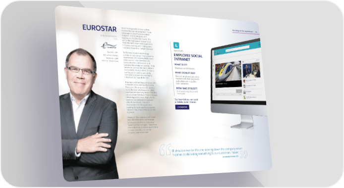 Focusing on the experience 14 Since it inaugurated service in 1994, EUROSTAR Eurostar has carried some 150 million passengers to and from the United Antoine de Kerviler Kingdom, France, Belgium, and CIO beyond, via the Channel Tunnel. The aim of the high-speed train service is to be the most loved travel experience in Europe, starting with making every customer interaction “delightfully easy.” EUROSTAR’S Founded: 1994 So Eurostar needed a technology EMPLOYEE SOCIAL HQ: London, England partner to help deliver those customer INTRANET Workforce: 1,800 experiences. CIO Antoine de Kerviler’s Industry: Transportation vision was to make Salesforce the centerpiece for collaboration and WHAT IS IT? customer knowledge at Eurostar. “With Employee social intranet. Salesforce, we have the most efficient and scalable cloud platform. It means WHAT DOES IT DO? our focus is on serving our clients, not building servers and managing Eurostar employees can share infrastructure,” says de Kerviler. real-time info from any device and collaborate to quickly They replaced their legacy intranet with help customers. a modern social community built on Force.com. When service disruptions HOW WAS IT BUILT? occur, Eurostar employees can share On Community Cloud and real-time info from any device. Travelers Force.com. use a custom Salesforce form to submit rebooking preferences. High-priority See how fast you can build cases are escalated and requested a mobile, social intranet. refunds are issued. Eurostar’s development roadmap includes building 15 to 20 additional apps to LEARN MORE replace manual processes across the business. Already in the works is a staff travel app where the discounted tickets employees receive as a corporate benefit will be managed. “Salesforce has enabled us to release applications in days or weeks, not months or years,” says de Kerviler. IT should never be the one slowing down the company when it comes to delivering something to our customers. Never. Antoine de Kerviler, CIO
