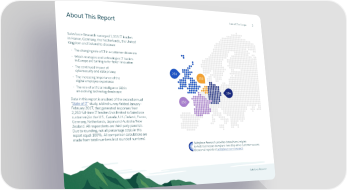 State of IT in Europe About This Report 2 Salesforce Research surveyed 1,005 IT leaders in France, Germany, the Netherlands, the United Kingdom and Ireland to discover: • The changing role of IT in a customer-driven era • Which strategies and technologies IT leaders in Europe are turning to for faster innovation • The continued impact of cybersecurity and data privacy 251 • The increasing importance of the 250 digital employee experience • The role of artificial intelligence (AI) in an evolving technology landscape 254 Data in this report is a subset of the second annual 250 “State of IT” study, a blind survey fielded January– February 2017, that generated responses from 2,263 full-time IT leaders (not limited to Salesforce customers) in the U.S., Canada, U.K./Ireland, France, Germany, Netherlands, Japan and Australia/New Zealand. All respondents are third-party panelists. Due to rounding, not all percentage totals in this report equal 100%. All comparison calculations are made from total numbers (not rounded numbers). Salesforce Research provides data-driven insights to help businesses transform how they drive customer success. Browse all reports at salesforce.com/research Salesforce Research