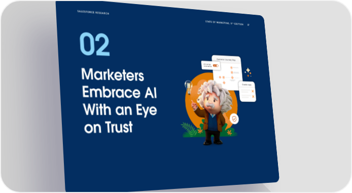 TH SALESFORCE RESEARCH STATE OF MARKETING, 9 EDITION 17 02 Customer Journey Map AI Journey Automation Marketers Create copy Embrace AI With an Eye on Trust