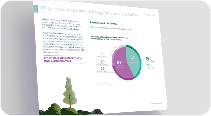Sales Teams Fall Short of Rising Customer Expectations State of Sales 8 01 Selling to today’s savvy, empowered customer Reps Struggle to Hit Quotas base is no easy task. Adjusting to this new reality is proving difficult for sales reps. In fact, well over The majority of sales reps expect to miss their quotas this year. half of reps expect to miss their quotas this year. This can’t be blamed entirely on unrealistic goals, Percentage of Sales Reps Who Expect to Meet the as 72% of reps say that management sets quotas Following Share of Their Quotas This Year with a data-driven approach. Our research points to shortfalls in traditional sales metrics, but also in overall approaches to customer engagement. In the face of so much opportunity to differentiate on experience, these shortfalls are a detriment to sales force productivity. 11% 57% of sales reps expect to miss ≤50% of quota 42% 16% their quotas this year. 17% Expect to >100% of quota 57% meet quota 51-75% of quota Expect to 26% 29% miss quota 100% of quota 76-99% of quota Base: Sales representatives Percents may not add to 100% due to rounding. Salesforce Research