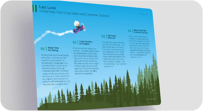 Last Look State of Sales 27 4 Practices That Drive Sales and Customer Success Rally Around the 04 Customer Journey Get Smart With customers demanding 03 consistent, contextualized, and About AI personalized experiences, selling Trade Intuition AI is projected to grow faster than is a team sport with reps playing 02 for Insights any other sales technology — and quarterback. Shared views of little wonder, since teams expect customer data across not just Make Time It’s been said that selling is an it to make a tremendous impact sales and marketing or sales and 01 for Selling art form — but that doesn’t mean on a variety of use cases. Rather service — but the three together — we can ignore the science. Sales than viewing AI as an existential are a critical ingredient for Winning deals and fostering loyalty teams in general, and particularly threat, teams that embrace AI to customer success. with today’s customers takes far high performers, are taking a new bolster reps’ performance may more than a good product at approach to selling: sharpening have a leg up in meeting — and the right price. Salespeople must their skills with data-driven insights. even predicting — their customers’ look beyond the transaction by As these insights become more expectations. demonstrating a thorough ingrained in top teams’ processes, understanding of their customers’ those without them risk falling unique needs, expectations, and behind the competition. circumstances. Teams whose reps are weighed down by processes and tasks will find it harder to meet elevated customer expectations. Salesforce Research
