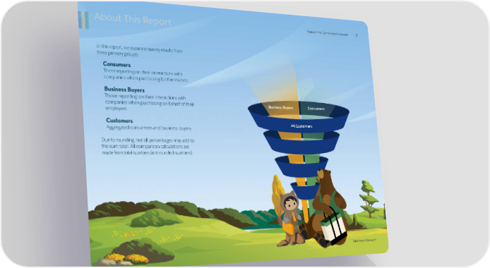 About This Report StaStatte oe of the Cf the Conneconnectted Ced Cuuststomeromer 33 In this report, we examine survey results from three primary groups: Consumers Those reporting on their interactions with companies when purchasing for themselves Business Buyers Those reporting on their interactions with companies when purchasing on behalf of their Business Buyers Consumers employers Customers All Customers Aggregated consumers and business buyers Due to rounding, not all percentages may add to the sum total. All comparison calculations are made from total numbers (not rounded numbers). Salesforce Research Salesforce Research