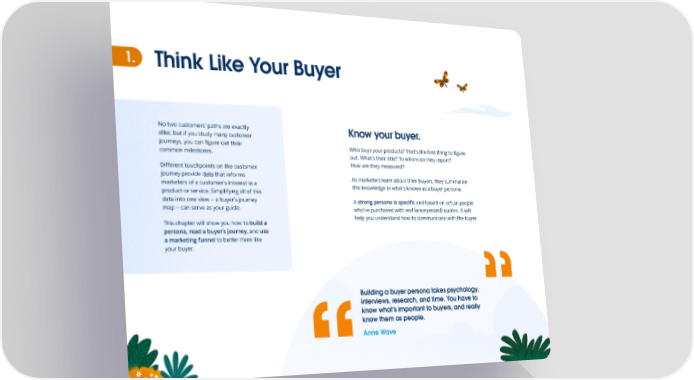 1. Think Like Your Buyer No two customers’ paths are exactly Know your buyer. alike, but if you study many customer journeys, you can figure out their Who buys your products? That’s the first thing to figure common milestones. out. What’s their title? To whom do they report? Different touchpoints on the customer How are they measured? journey provide data that informs As marketers learn about their buyers, they summarize marketers of a customer’s interest in a this knowledge in what’s known as a buyer persona. product or service. Simplifying all of this data into one view — a buyer’s journey A strong persona is specific and based on actual people map — can serve as your guide. who’ve purchased with real (anonymized) quotes. It will This chapter will show you how to build a help you understand how to communicate with the buyer. persona, read a buyer’s journey, and use a marketing funnel to better think like your buyer. Building a buyer persona takes psychology, interviews, research, and time. You have to know what’s important to buyers, and really know them as people. Anne Wave
