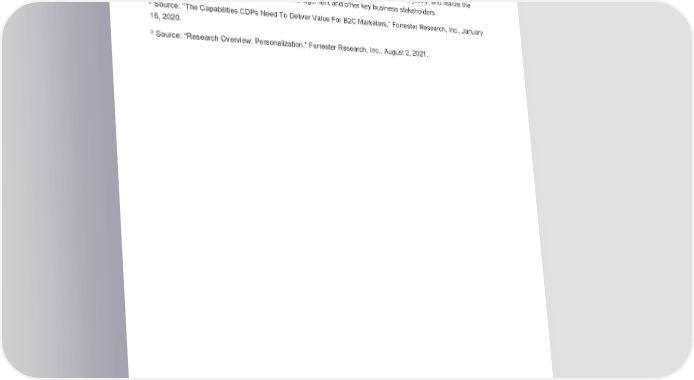 Appendix B: Endnotes 1 Total Economic Impact is a methodology developed by Forrester Research that enhances a company’s technology decision-making processes and assists vendors in communicating the value proposition of their products and services to clients. The TEI methodology helps companies demonstrate, justify, and realize the tangible value of IT initiatives to both senior management and other key business stakeholders. 2 Source: “The Capabilities CDPs Need To Deliver Value For B2C Marketers,” Forrester Research, Inc., January 16, 2020. 3 Source: “Research Overview: Personalization,” Forrester Research, Inc., August 2, 2021. THE TOTAL ECONOMIC IMPACT™ OF SALESFORCE MARKETING CLOUD 35